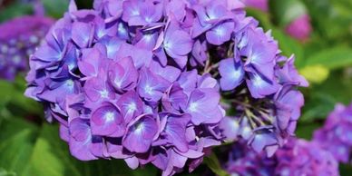 Deep Purple (Hydrangea macrophylla 'Deep Purple') is a striking mophead hydrangea known for its rich, saturated violet-purple blooms that hold their color well throughout the season. It thrives in part shade with moist, well-drained soil, and deeply acidic conditions enhance its intensity. Blooms on old wood—prune lightly after flowering. A bold and dramatic choice for borders, containers, or focal points.