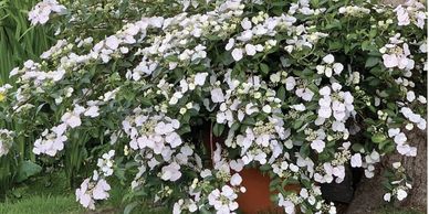 Fairytrail Bride (Hydrangea hybrid 'Fairytrail Bride') is a unique cascading hydrangea with trailing stems covered in creamy white lacecap blooms. It thrives in part shade with moist, well-drained soil and adapts well to containers, hanging baskets, or raised beds. Blooms on old wood—prune only to shape after flowering. A graceful, award-winning variety ideal for adding soft, romantic flow to any garden space.