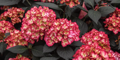 Summer Crush (Hydrangea macrophylla 'Bailmacfive') is a compact, reblooming mophead hydrangea with rich raspberry red to vibrant purple blooms, depending on soil pH. It thrives in part shade with moist, well-drained soil and offers excellent heat tolerance. Blooms on both old and new wood—providing reliable color all season long. A colorful, space-saving choice for borders, containers, and foundation plantings.